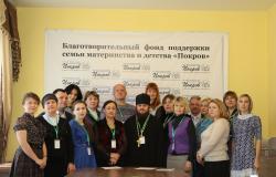 В Центре защиты материнства «Покров» состоялась двухдневная стажировка для сотрудников НКО из разных городов России на тему: «Создание и организация работы кризисного центра для беременных женщин и одиноких матерей, оказавшихся в сложной жизненной ситуации». Представителей некоммерческого сектора познакомить с опытом работы приюта временного пребывания «Покров», с практической деятельностью юриста, социального работника, психолога, педагога, а также со схемой взаимодействия с государственными структурами.