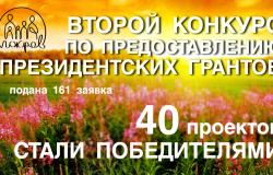 Грантооператор благотворительный фонд «Покров» подвел итоги второго конкурса по предоставлению Президентских грантов. Всего была подана 161 заявка, 40 проектов стали победителями https://grants.oprf.ru/grants2016-2/winners/?search=&district=&subject=&... . Мы поздравляем некоммерческие организации с победой и благодарим всех, кто принял участие.