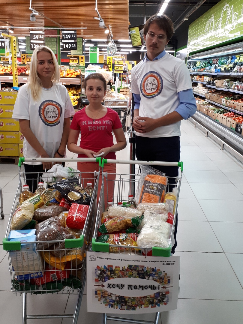 Друзья! Акция "Хочу помочь" подошла к концу. В течение двух дней неравнодушные жители Пензы приобретали и складывали в тележки сахар, крупы, макароны, подсолнечное масло и другие продукты, из которых мы сформируем пайки для многодетных малообеспеченных семей, стоящих на учете в фонде "Покров".