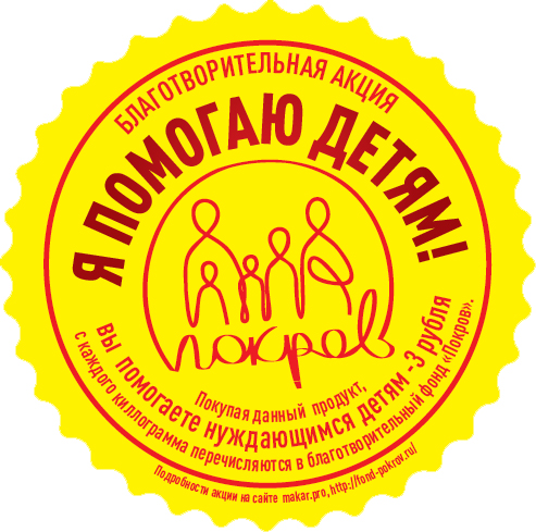 С 1 июня стартовала акция "Я помогаю детям" совместно с ООО "Крестьянское Хозяйство Макарова И.М.". В акции участвуют "Докторская от Макарова" и "По-русски от Макарова". Покупая данную продукцию, вы помогаете детям, которые стоят на очереди на лечение и другим подопечным нашего фонда "Покров". Продукцию Вы можете купить в сетевых и розничных торговых точках городов и областей: Пензы, Саратов, Нижнего Новгорода, Ульяновска, Тамбова, Севастополя, а так же в Республиках: Мордовии, Татарстана и Крыма. Все собранные средства каждый месяц будут направляться на благотворительные цели.