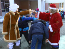 Масленица по-карельски прошла сродни исконно русскому празднику: та же удаль и задор, те же забавы, но с национальным колоритом. Так, по команде карельского Деда Мороза с ребятами из центра провели несколько игр. Началось все с куча-малы. В другом конкурсе нужно было умело и ловко изобразить движения землекопа. Кто больше всего похож — тот и победил.